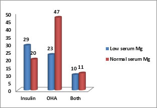 Figure 5: Correlation of serum magnesium with treatment modality in diabetes mellitus