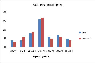Figure 1: Showing age distribution among test and control Figure 2: Showing sex distribution among test and control