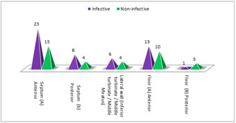 Table 3: Comparison of bleeding sites in both infective and non-infection epistaxis