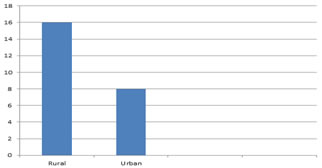 Figure 1: Also, among the 24 stool positive cases, 16 belonged to the rural communities, whereas only 8 belonged to the urban community; thereby, showing a higher prevalence among the rural population.