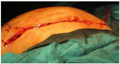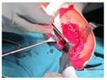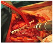 All patients were admitted from casualty or OPD. Figure 1: Instruments used for ORIF with PHILOS PHILOS plate. Power drill. 3.2mm drill bit. 3.2mm drill guide. 3.2mm tap. 3.2mm screw set. Depth gauge. 3.2mm screw driver. And general surgical instruments i.e. artery forceps, retractors, periosteal elevator, reduction clamp, bone lever. PROCEDURE Under GA. position: supine; folded towel under injured shoulder Figure 2: position of patient From nape of neck, injured side chest, axilla and till finger tips were painted with betadine solution. patient draped with sterile linen approach: Delto-pectoral approach was used for dissection to reach bone and fracture site. Incision was starting just distal to coracoid process and as extended 12-14 cm towards lateral side of the biceps tendon. Skin, subcutaneous tissue (fat, fascia) were divided. Important neurovascular structures were identified and retracted gently. Cephalic vein was given extra care. With the blunt dissection, a space was developed between lateral aspect of proximal humerus and deltoid. In this space Hohman’s retractor was placed. Figure 3: per-op blunt dissection Deltoid muscle insertion anteriorly on the shaft of humerus was relieved as this improves the exposure and makes space for plate. Under the guidance of fluoroscopy fracture was reduced and was provisionally fixed with K-wire as a temporary fixation. Plate was placed over the fracture laterally after conforming accurate position it was secured to head of humerus and shaft with k-wires. Figure 4: Per-op placing plate Then screws were placed after checking stability of the fixation wound wash was given with normal saline and metronidazole Figure 5: Per-op screw placement Wound was closed in layers with vicryl and skin stapples or ethilon suture. Figure 6: Per-op closure in layers Sterile dressing was done and patient was shifted to post-operative ward for observation.