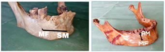 Results Morphometric features of 100 dried human mandibles revealed that the number of MF on each side was single in all the cases, no double foramen or accessory foramen were recorded in this study. The mean measurement of the angle of the mandible was 128°. (fig-1).