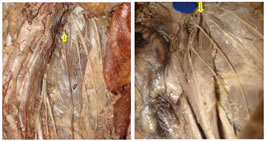 Figure 1 Figure 2 Figure 3 Figure 4 Figure 5 Figure 1: Lateral femoral cutaneous nerve from L1, L2-High form; Figure 2: Lateral femoral cutaneous nerve from L2 – High form; Figure 3: Lateral femoral cutaneous nerve from L3 – Low form; Figure 4: Lateral femoral cutaneous nerve as two branch; Figure 5: Lateral femoral cutaneous never as branch of femoral nerve