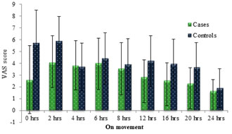 Picture 1: VAS score at rest to 24 hours Picture 2: VAS score on movement from 0 to 24 hours