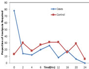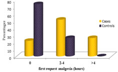 Picture 3: 74% pts of control group requested analgesia at 0 hours Picture 4: NV is more associated with control at between 4 to 8 hours (NV= nausea vomiting ) Picture 5: opoid requirement