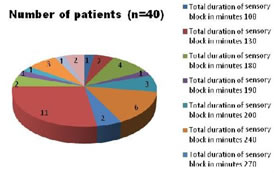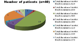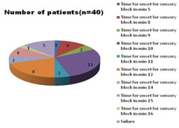 STATISTICAL ANALYSIS It was done by descriptive analysis using SSPS version and mean time of onset of sensory and motor blockade, mean duration of motor and sensory block with standard deviation (SD) were calculated.RESULTS Out of 40 patients, 25 patients were Male and 15 were female (Table I).