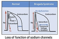 DISCUSSION Brugada syndrome also termed as Pokkuri death syndrome (PDS), sudden unexpected death syndrome (SUDS) or Sudden unexpected nocturnal death syndrome (SUNDS), is a condition with characteristics ECG changes (ST elevation in the anterior leads V1 - V3 with apparent Right bundle branch block) in structurally normal heart2, which may present with tachyarrhythmia, syncope, ventricular tachycardia, ventricular fibrillation or sudden death at sleep1. Brugada syndrome is most prevelant in young adult males of south East Asian descent, but it has been documented in both genders, all age groups and a variety of ethnic population accounting for prevalence ranging from 1 in 5000, incidence about 0.12-0.8% recorded from electrocardiogram3 and 0.05 % - 0.6% of cases of SCD4. The etiology of cardiac disease Brugada syndrome is caused by an inherited ion channelopathy associated with development of irregular cardiac rhythmic activity. It follows an autosomal dominant inheritance pattern with variable presentation and expression. In approximately 25% of families, Brugada syndrome is the result of a defect in SCN5A gene on chromosome 3, which encodes the alpha submit of the sodium channel and in another 25% of cases, the inheritance pattern is not clear but is felt to be the allelic disorder of the sodium channel gene. The remaining 50% of cases have no family history and are postulated to be the result of sporadic mutation5.