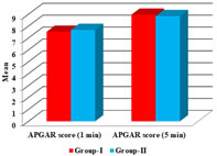 Graph 1: Comparison mean APGAR score between the group-I and II (p>0.05 no significant difference compared between group-I and II)