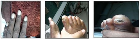 INTRODUCTION Chronic kidney disease is a progressive loss of kidney function over a period of months or years through five stages.1,2 The effects of chronic kidney disease are complex as it causes dysfunction of multiple organs. The skin, most visible and accessible organ of the body, may function as an important diagnostic window to the diseases affecting the internal organs including the renal system.Nail changes occur in patients with uremia as well as in those undergoing dialysis. Microscopic examination of hair in uremia shows hair in telogen phase. With scanning electron microscope, uremic hair shows irregular diameter, flattening and twisting of its shaft and mild cuticular abnormalities. Cutaneous manifestations are often neglected by the clinician and physician and do not invite proper attention. However, they are not only very disturbing to the patient but also have systemic effects. Recognizing and treating these cutaneous manifestations can have multifactorial advantages in CKD patients. This study was conducted to study the nail and hair changes in chronic kidney disease patients. MATERIAL AND METHODS A total of 100 patients with chronic kidney disease attending the Nephrology clinic, General Medicine out-patient clinic and wards were included in the study. Written informed consent for participation in the study was obtained from each patient. Chronic kidney disease was defined by KDOQI guidelines (kidney disease outcome quality initiative group rate). The CKD patients were classified based on the presence of kidney damage and level of kidney function (glomerular filtration rate [GFR]), irrespective of diagnosis, according to the KDOQI CKD classification.3 Staging of these patients were done according to the eGFR using MDRD (modification of diet in renal disease) formula. Patients with CKD stage V were further classified as either stable CKD, hemodialysis-dependent CKD (D-CKD). Each patient was subjected to detailed history and examinations of past records, with special emphasis on records of hypertension, chronic kidney disease, diabetes mellitus and other comorbid conditions. A thorough clinical examination was done, especially dermatological examination. Inclusion criteria