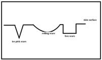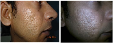INTRODUCTION Acne is common in adolescents. Acne is present in various grades of severity of grade 1 to grade 4. The most unwarranted sequelae of acne are acne scarring.1 Acne may cause scarring even in mild grades of acne. The incidence rate of acne scars is 11-90% in men and women as reported in various studies.2 Acne scars lead to detrimental impacts on psychosocial life of adolescent patients. Aim of acne treatment is prevention of permanent acne scarring. Severe grades of acne or delay in treatment may lead to the development of acne scars. Acne scars are classified into atrophic and hypertrophic types of scars. AAtrophic acne scars are classified as ice pick, box and rolling type of acne scars.[Figure 1]Acne scar treatment armamentarium involves chemical peeling, subcision, laser resurfacing with CO2laser, ErYAG laser, etc.1 Even though ablative lasers are known to be effective for treating acne scars, they are associated with prolonged downtime and the drawback of hyperpigmentation in Indian skin i.e. types type IV and V.3 The fractional radiofrequency (FRF) system has reported to cause dermal regeneration with minimal epidermal changes.4 FRF principly works by generating heat by radiofrequency and heating dermis thereby stimulating the collagen tissue, promoting the regeneration of collagen and the reconstruction of soft tissues.6 Fractional radiofrequency energy can be delivered by two different modes such as needles or by an array of elecrodes.5 This study is to asess the efficacy of FRF delivered by elecrodes for treatment of acne scars.