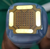 SUBJECTS AND METHODS This is a retrospective, cohort study performed on study population of patients with acne scars treated with FRF between January 2016 to December 2017 at Government Medical College, Latur. Institutional Ethical Committee approval was taken. Healthy men and women above 16 yrs of age with acne scars were included in study. Pregnant females or those having active acne were excluded. Similarly patients with active electric or facial implant, history of surgical, chemical, light based treatment, isotretinoin treatment in past 3 months, keloidal tendiences were excluded from the study. Thirty one patients satisfied the criteria which included 18 female and 13 male patients having mean age of 22.48 yrs. The patients were given 3 treatment sessions of FRF at the interval of 4 weeks. The treatment parameters were decided based on scar severity. The procedure area was cleaned with cleanser, topical anesthetic cream was applied over the face for 30 min before procedure. The patients were given 2 passes with 30% overlapping. The photographs were taken before and one month after 3rd sitting of the treatment. The photographs were assessed and improvement was determined by Global acne severity classification of the Goodman and Baron (GB) (qualitative and quantitative)and Echelle d’Evaluation clinque des cicatrices (ECCA) for acne scarring.[Table1 to 5] After the procedure patients were advised moisturizers and sun protection for 1 week. If patient experienced pain he was advised to take a paracetamol tablet. Fractional radiofrequency instrument: This instrument delivers fractional radiofrequency energy via electrode pin arrays. Two types of sets of electrodes having 64 pins and 81 pins are provided and the tip size is 21mm X 21mm and 13.5mmX 13.5mm. .[Figure 2] The pins on tip are connected to bipolar radiofrequency electrodes which form positively and negatively charged electrodes and deliver energy upto 1.15 MHz at multiple points. The energy of 11-142 mj/pin and of 20 J by the assembly of pins is delivered to the skin surface in contact by sparing adajacent areas thus creating fractional effect. [Figure 3] The energy can be delivered by selecting modes provided in instrument from M1 to M4. M1 mode delivers energy at superficial level of dermis and M4 upto deep layers of dermis. More energy was deliverd to areas having moderate to severe scarring over cheek by selecting M3 and M4 modes and bony areas were given M1 and M2 modes of energy. [Figure 4]The study was performed using fractional radiofrequency device ‘Dermatrix’, manufactured by GSD.