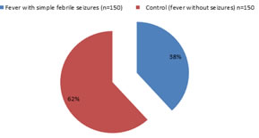 MATERIAL AND METHODS Three hundred patients aged between 6 months to 60 months admitted at paediatric ward of S. P. Medical College and associated group of hospitals, Bikaner, Rajasthan were studied. Inclusive Criteria: Paediatric patients having simple febrile convulsion and patients presenting with short duration of fever (<4 days) but without seizures were selected for study. Exclusion Criteria: Children with complex febrile seizures, children with family historyofepilepsy, mental retardation and severe malnutrition were excluded from the study. Methods: This case control study evaluated 300 children aged 6 to 60 months and these were divided in two groups. Each group included 150 children. One group had febrile seizures and another same age group were febrile but without seizures (control). Both groups were compared. Each patient was evaluated for Hb, HCT, MCV, MCH, MCHC, RDW, PS (peripheral smear) examination. Serum ferritin level was estimated in both the groups. Red Blood Cell (RBC) indices were estimated using an automated haematology analyzer (Sysmex kx-21) and serum ferritin estimation done using chemi luminescence immune assay (Advia centaur-Fully Automated). Febrile seizures(9) were diagnosed as per ILAE classification and diagnosis of IDA was done as per guidelines by WHO 10. The duration of study was two years(January 2018 to January 2020). Statistical analysis: Fever with seizure group and fever without seizure (control) group reports were compared by SPSS software using Z test.