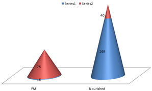 Table 2: Study of small for Gestage Age, Average, appropriate age in Fetally malnourished and nourished neonates