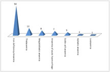 Table-2: Prevalence of different types of Anaemia 50 (58.8%) Iron deficiency, 12 (14.1%) thalassamia, 8 (9.4%) megaloblastic anaemia, 7 (8.23%) anaemia of acute haemorrhage, 5 (5.88%) sickle cell anaemia, 2 (2.55%) were aplastic anaemia, 1 (1.4%) leukaemia.